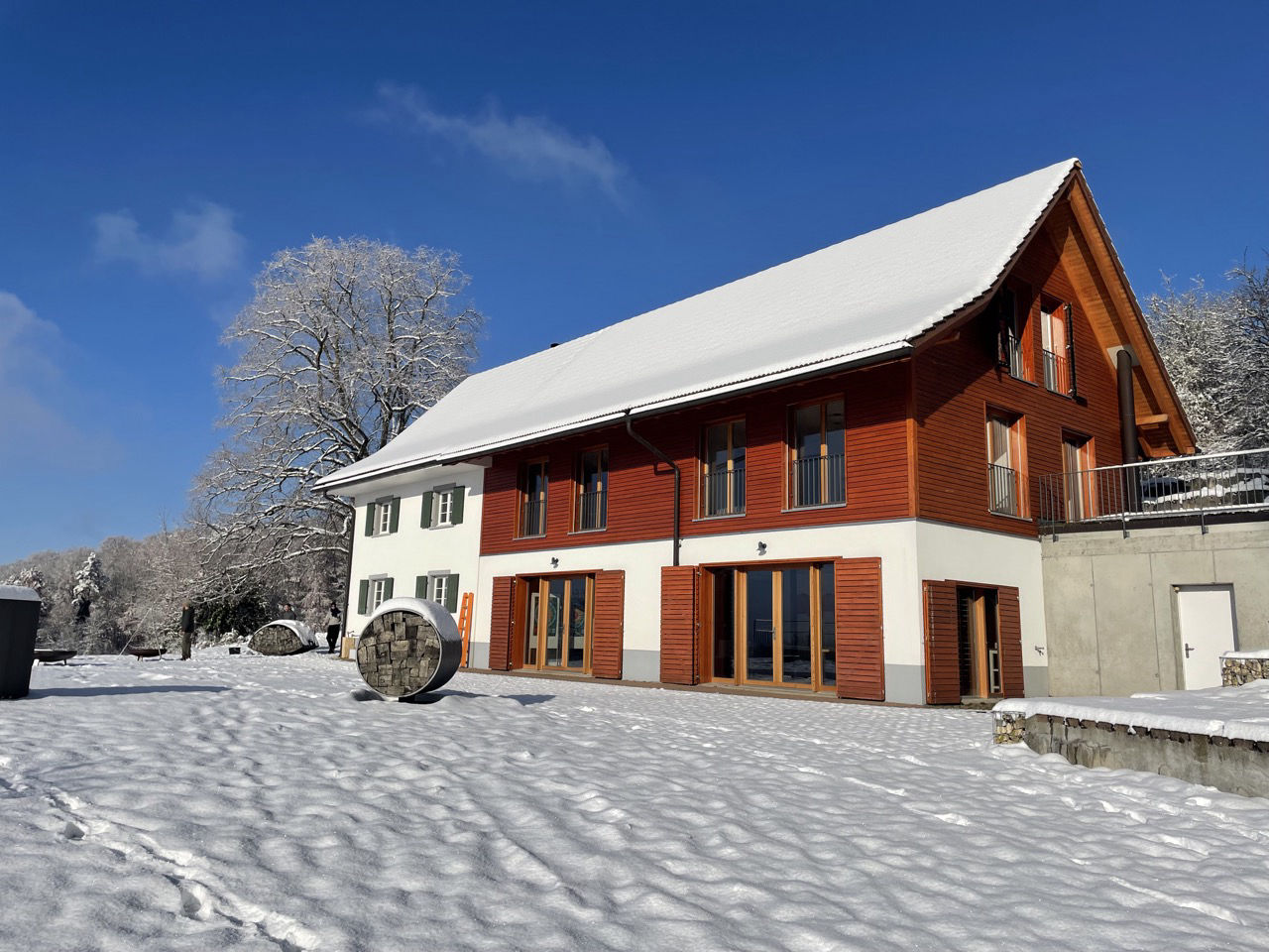 Im Jahre 2023 kaufte die Wohnbaugenossenschaft Interamenta das Haus. Im ursprünglichen Wohnhaus leben 3-4 Genossenschaftsmitglieder. Die Ferienwohnung betreiben sie als Seminar- und Ferienhaus. Dazu gehört der grosszügige Saal im Erdgeschoss mit direktem Zugang zur Terrasse, die Ferienwohnung im ersten Stock und das Dojo unter dem Dach.